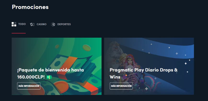 | 🎁 Bonos | Bono de bienvenida del 100% hasta $160.000 CLP, giros gratis frecuentes, reembolsos semanales del 10% para miembros VIP. |