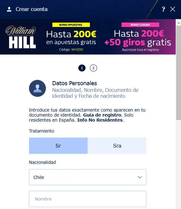 ¿Cómo registrar una cuenta en William Hill?