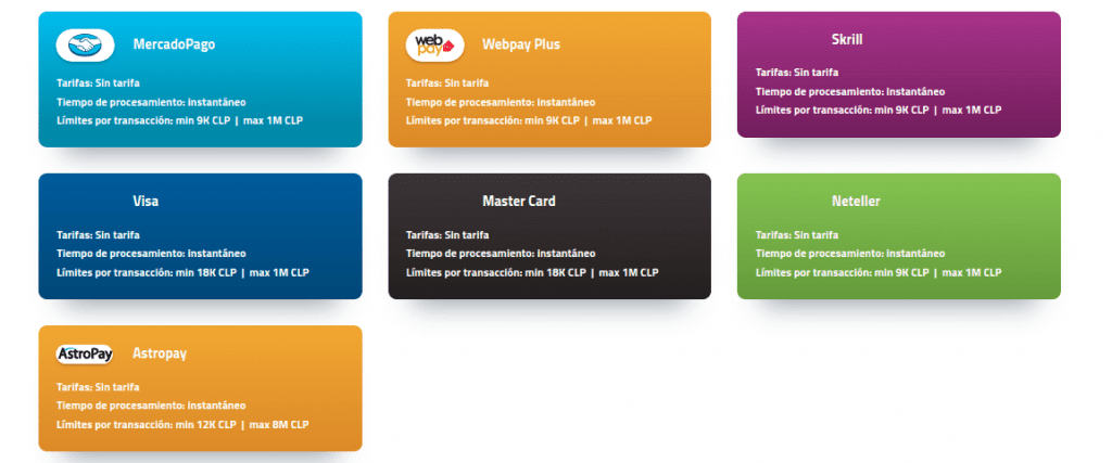 | 💳 Formas de pago | Variedad de opciones de pago aceptadas, adecuadas para jugadores chilenos |