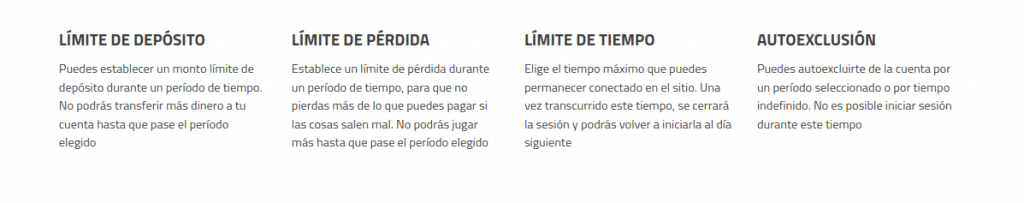 | 🔒 Juego Responsable | Secciones específicas y herramientas de ayuda |