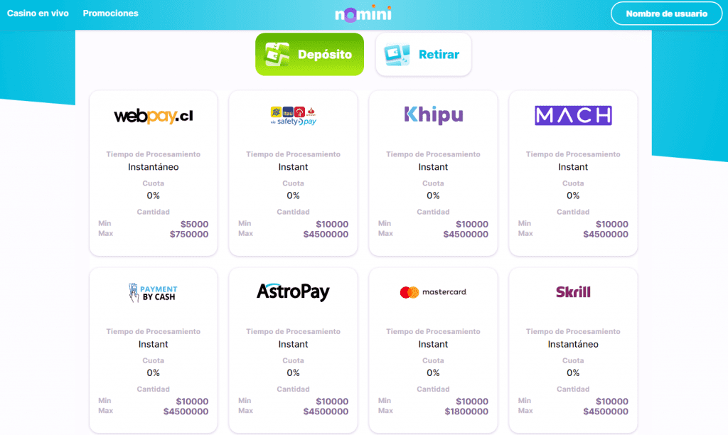 Métodos de Pago en Nomini Casino