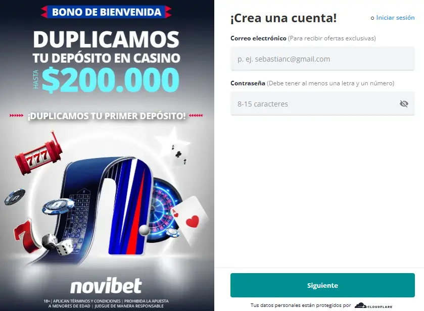 Novibet ofrece un bono de bienvenida que iguala el 100% del primer depósito hasta $200,000 CLP, junto con 50 giros gratis. Este bono es exclusivo para nuevos usuarios que se registran por primera vez en casino, y es importante destacar que, aunque no hay un bono sin depósito, el bono de bienvenida es bastante competitivo en el mercado chileno. Para reclamar este bono, es necesario residir en Chile y haber aceptado el bono de bienvenida durante el proceso de registro y tras realizar el primer depósito.