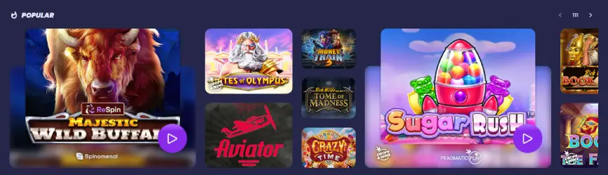 - 🎲 Juegos crash y bingo: El casino también ofrece juegos innovadores como crash games y más de 20 opciones de bingo, proporcionando oportunidades emocionantes para ganar grandes premios.