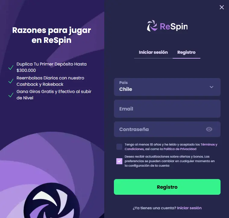 Registrar una cuenta en ReSpin es un proceso sencillo y rápido. Aquí te explico paso a paso cómo crear tu cuenta y comenzar a jugar.