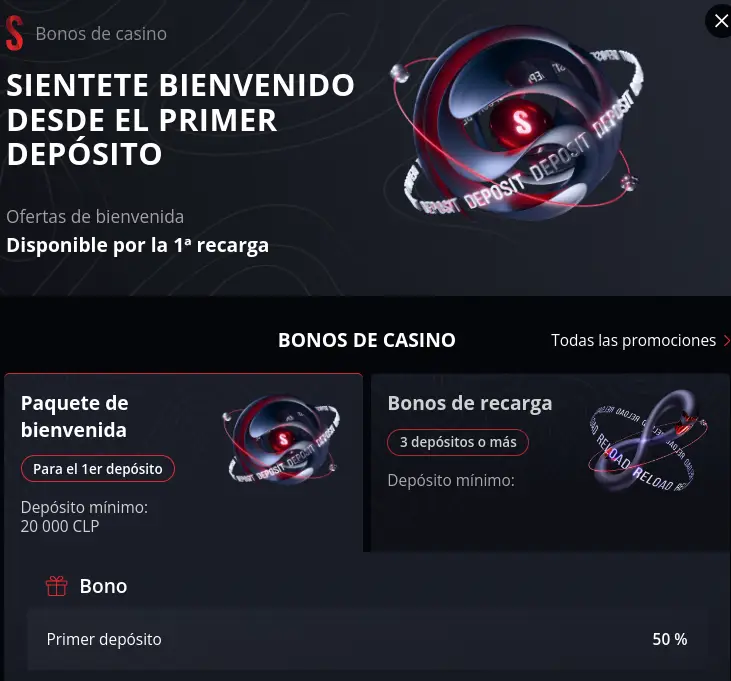 | 🎁 Bonos | 100% sobre tu depósito hasta 600.000 CLP |