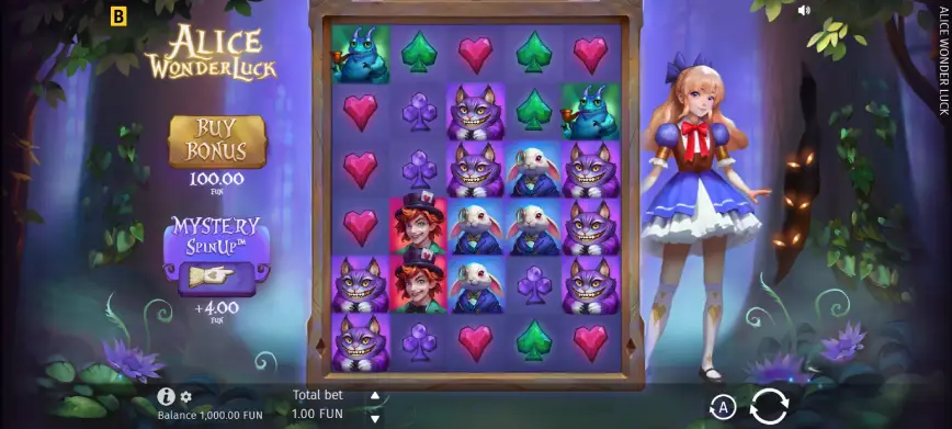 La incorporación de los Símbolos Mystery es una de las innovaciones clave de Alice WonderLuck. Estos símbolos pueden aparecer en cualquier tirada del juego base, aumentando la expectativa y creando un nivel de suspenso que es a la vez emocionante y envolvente. Además, pueden transformarse en los codiciados Golden Mystery, los cuales activan la función Coin. Esta función ofrece multiplicadores variados junto con símbolos Collect, brindando la oportunidad de lograr ganancias significativas. La presencia de estos símbolos no solo añade un elemento de sorpresa, sino que también multiplica el potencial de ganancias, manteniendo a los jugadores comprometidos y entretenidos.