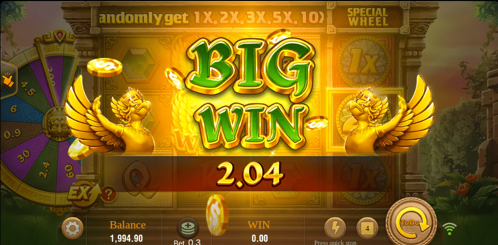 El diseño temático de Fortune Gems 2 es uno de sus mayores atractivos. Los carretes del juego están colocados entre columnas de piedra talladas artísticamente, evocando una atmósfera de antigua civilización. Los símbolos incluyen zafiros, esmeraldas, rubíes y un imponente pájaro de oro incrustado con gemas, que recuerda a las formas artísticas tradicionales de Camboya.