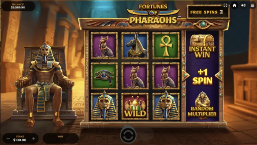 Las animaciones en Fortunes of Pharaohs son fluidas y bien integradas, aportando una capa adicional de atractivo visual. Cada giro de los carretes y cada combinación ganadora se celebra con animaciones que realzan la sensación de logro y emoción, manteniendo a los jugadores comprometidos y entretenidos.