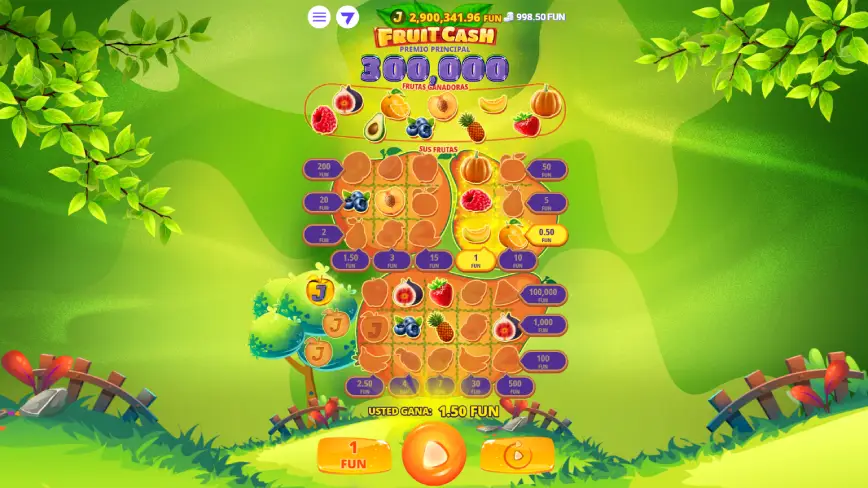 Con un RTP del 96.71%, Fruit Cash está diseñado para ofrecer premios frecuentes, haciendo que el juego sea atractivo para aquellos que buscan una experiencia de juego balanceada. Este RTP es bastante competitivo y cumple las expectativas de muchos jugadores que buscan maximizar sus beneficios a lo largo del tiempo. La varianza del juego es baja/media, lo que significa que los jugadores pueden esperar una frecuencia de ganancias decente, aunque los premios pueden no ser masivos en cada ocasión. Esta característica es ideal para aquellos que prefieren un juego más estable y menos volátil, donde las oscilaciones en el saldo no son tan pronunciadas.