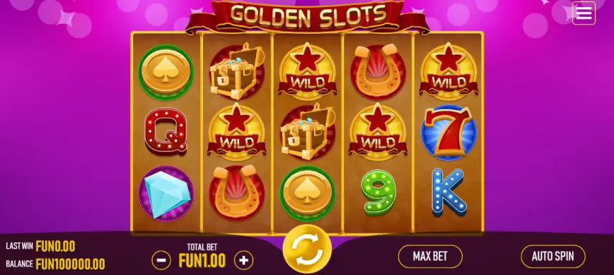 Golden Slots adopta un formato estándar de 5 carretes, lo cual es familiar y cómodo para la mayoría de los jugadores de tragamonedas. Esta estructura de juego no solo facilita la adaptabilidad para los jugadores nuevos sino que también ofrece suficiente variación para mantener el interés de los jugadores más experimentados. Además, al estar diseñada en HTML5, esta estructura es compatible con una amplia gama de dispositivos, permitiendo a los jugadores disfrutar del juego tanto en computadoras como en dispositivos móviles.