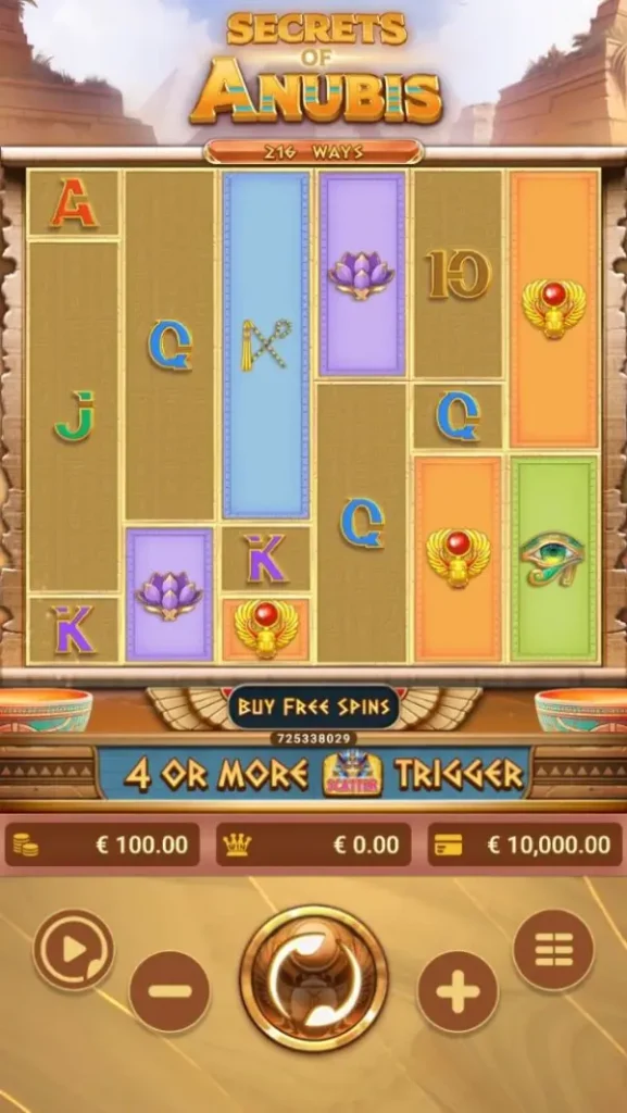 Secrets of Anubis ofrece una opción de juego demo que permite a los jugadores experimentar todas las características del juego sin ningún riesgo financiero. Esto es ideal para aquellos que quieren entender cómo funcionan los multiplicadores y las bonificaciones especiales antes de comprometer sus fondos. Jugar la versión demo te da la ventaja de planificar tus estrategias sin la presión de perder dinero.